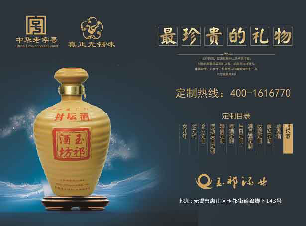 送长辈说白了就是送健康,不一定要很贵。有诗人道:“黄酒不伤身,微醉如酒神,品自香中来,天地皆入樽”,就是喝黄酒的好处。黄酒的养胃健肾、和血行气的功用,是其它酒品不能媲美的,无锡老酒是黄酒中的珍品。